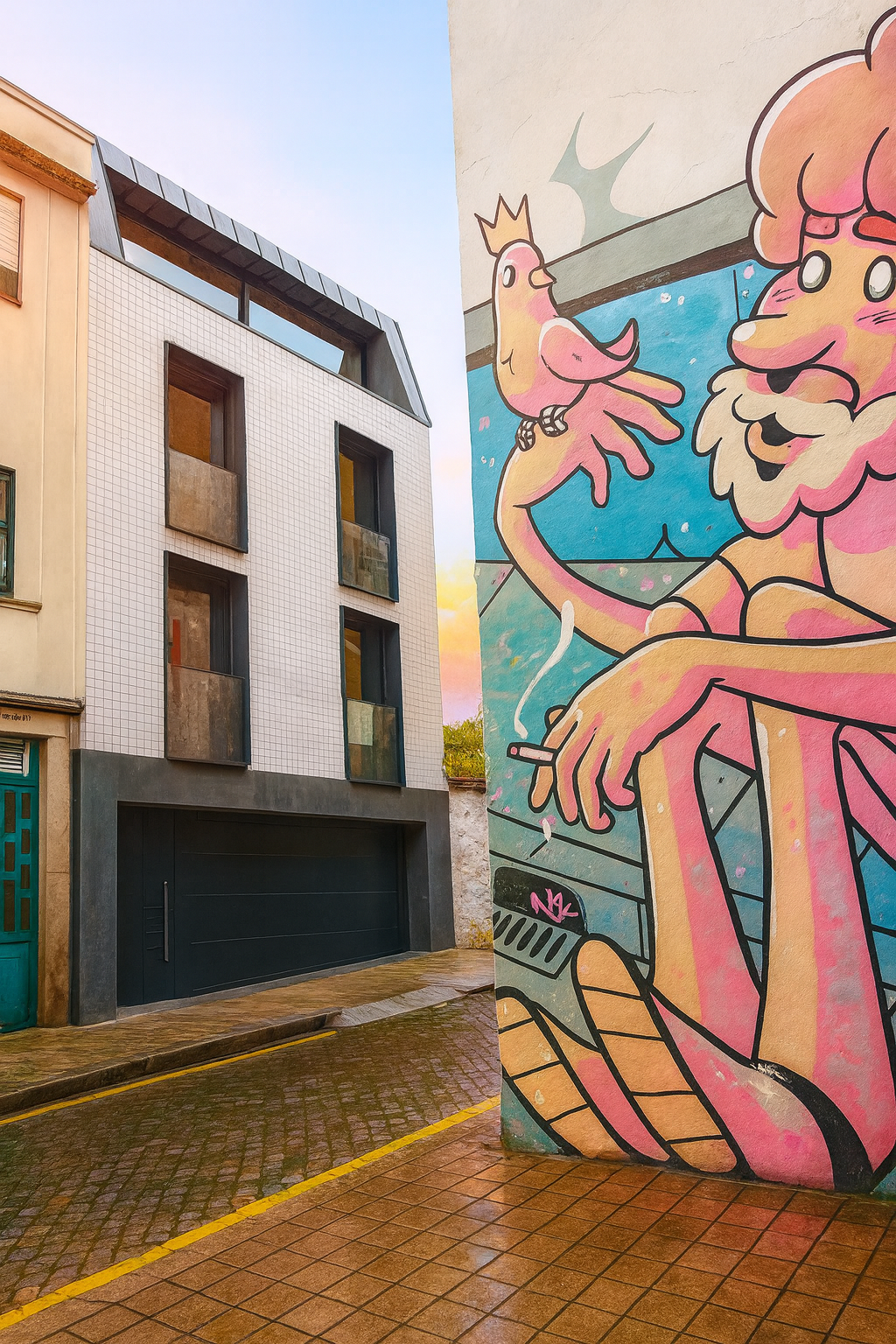 Nos últimos anos, desenvolvemos projetos muito diferentes entre si. Um deles foi completamente fora da nossa escala habitual: o Edifício do Bom Jardim, apenas com quatro frações, um exercício de detalhe e contenção. Optámos por materiais de longa duração: azulejo cerâmico artesanal, cobertura integral em zinco, e uma verticalidade rigorosa nos vãos. Pequeno em dimensão, grande em precisão.