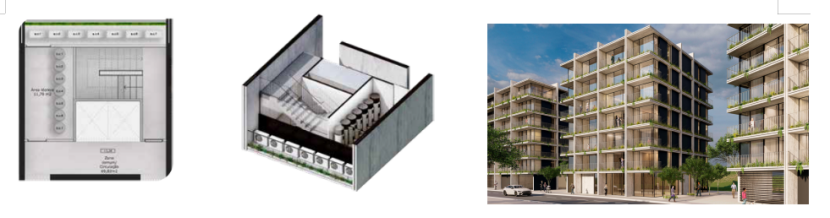 O programa integra ginásios, restaurantes, uma superfície comercial com 6.000 m², áreas de trabalho e um grande jardim posterior que funciona como praça e elemento respiratório da cidade. Não é apenas um edifício, é uma nova centralidade urbana, preparada para o futuro.